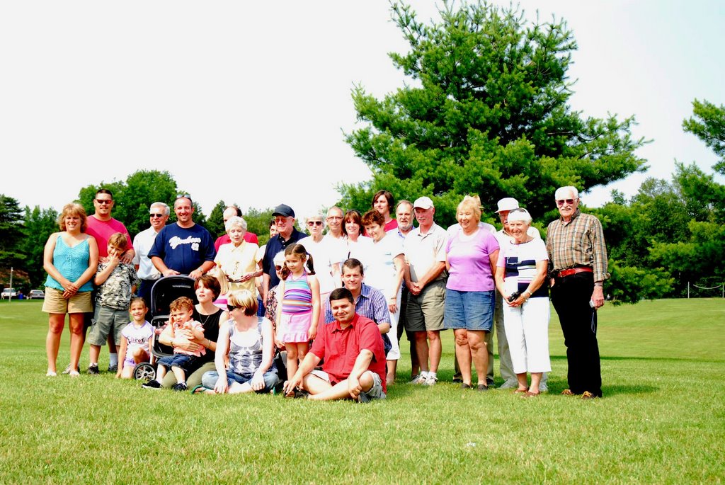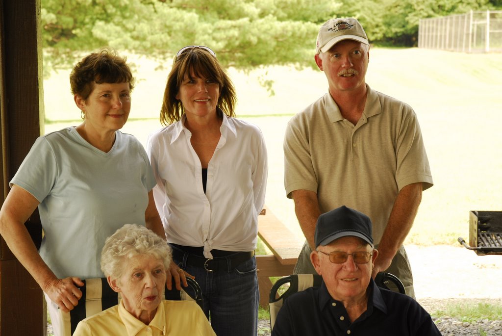 ...for my mother's mother's side, up in Rome, NY. I wasn't ever particularly close to this side, as my maternal grandmother passed away when I was young. It's curious to drive upstate to a big field to come together with a lot of people I wouldn't otherwise know, and be related. It felt neat to be connected to something I didn't feel very connected to, if that makes sense. This was a meeting of the Wheelers and the Howes. My mom's mom was named Jeanne Howe. The name Howe is apparently from Northern England (hilly country I guess) and comes from the Norman (whatever that language would be) word for hill. I guess the Normans came along and named all the different hill dwellers (I guess I do come from a long line of hillbillies) "How". I think the "e" on the end came later. I read that in an email that someone had up at the reunion.